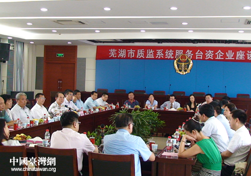 中國臺灣網7月19日蕪湖消息 日前,蕪湖市臺辦會同市質監局召開了“蕪湖市質監系統服務臺資企業座談會”,市臺商協會會長陳鑒章率15家在蕪臺資企業董事長、總經理等20余人參加座談。