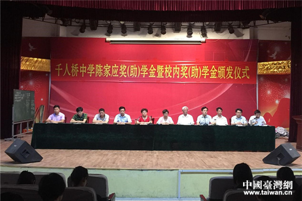 中國臺灣網(wǎng)5月18日舒城訊 5月15日下午,2017-2018學(xué)年度陳家應(yīng)獎學(xué)金頒獎儀式在安徽省舒城縣千人橋中學(xué)舉行。舒城縣委統(tǒng)戰(zhàn)部、縣臺辦負(fù)責(zé)同志出席儀式。