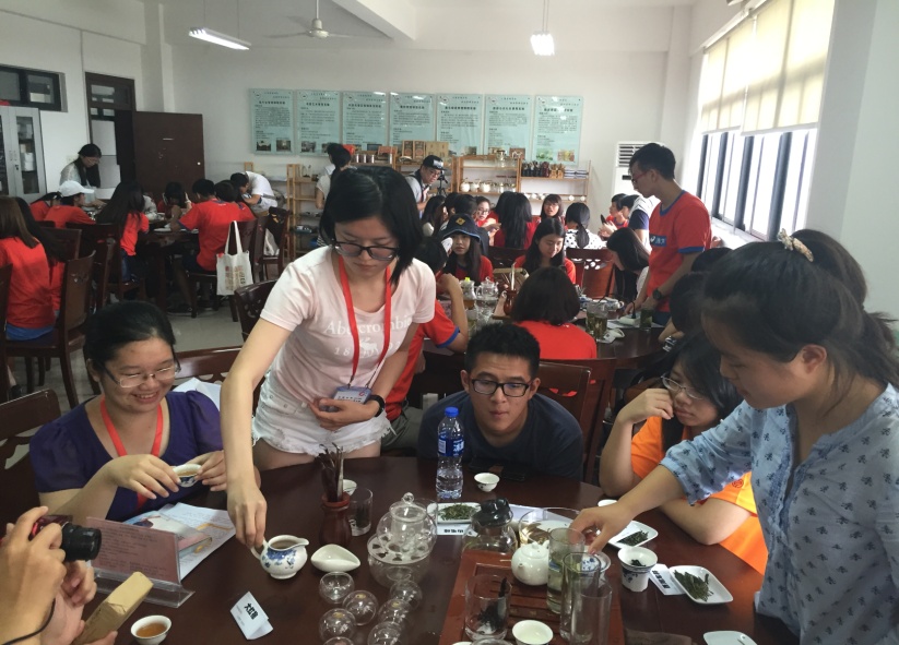 1928年建校的省屬重點綜合性學校安徽大學7月10日迎來了臺胞青年夏令營安徽分營的51位營員。美麗的馨苑校區,安大老師帶領同學們參觀了校園,聆聽了學校的發展歷史。在商學院里,一堂中國茶文化交流課讓同學們對茶道有了初步的認識,大家品嘗了中國十大名茶中出自安徽的太平猴魁、祁門紅茶、黃山毛峰,了解了白茶、沱茶、烏龍茶等不同茶種的工藝、特色和最佳品嘗方式,許多同學被安大學生的茶藝表演深深吸引。