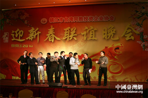 中國(guó)臺(tái)灣網(wǎng)1月27日鎮(zhèn)江消息 1月26日晚,江蘇省鎮(zhèn)江市碧榆園金山廳內(nèi)張燈結(jié)彩,溫暖如春。鎮(zhèn)江市臺(tái)協(xié)迎新春聯(lián)誼晚會(huì)在這里隆重舉行。全市臺(tái)資企業(yè)協(xié)會(huì)會(huì)員,在鎮(zhèn)臺(tái)商,協(xié)會(huì)顧問(wèn),涉臺(tái)部門相關(guān)領(lǐng)導(dǎo)近300人歡聚一堂,迎新春暢敘友情,話發(fā)展共謀雙贏。
