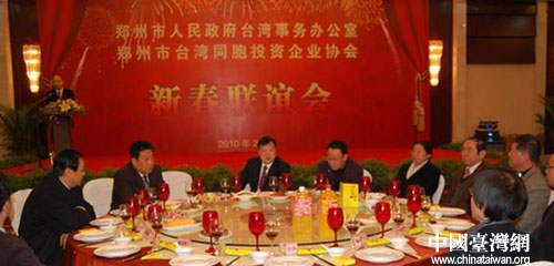 中國臺灣網2月5日鄭州消息 2月3日,鄭州市臺辦、鄭州市臺資企業協會聯合舉辦2010年迎新春聯誼會。近300名協會單位代表歡聚一堂,暢敘友情,互相祝愿在新的一年里事業取得更大發展。河南省臺辦副主任尚潤澤,鄭州市委常委、統戰部部長王林賀,市人大副主任李元法,市政協副主席王薇出席了聯誼會。