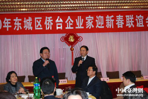 區委副書記、政法委書記常衛(左一)代表區委區政府向臺商、僑商致以新春祝福。圖片來源:東城區臺辦