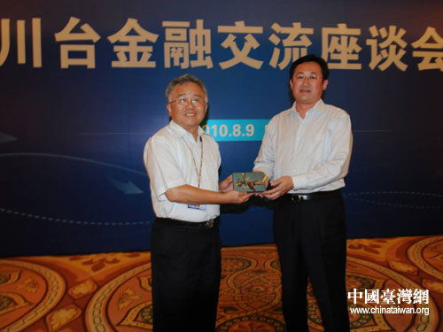人民銀行成都分行、四川省銀監局、四川省證監局、四川省保監局等4名負責人分別介紹了四川銀行、證券、保險等金融行業發展情況,臺灣中小企業銀行董事長、臺灣信托同業公會理事長羅澤成先生等7名臺灣銀行、保險、證券、票券、信托等金融企業機構負責人也分別對臺灣金融行業發展情況進行了簡要介紹,并就銀行、證券、保險、票據等金融業務進行了交流,對ECFA簽署后川臺金融業合作商機等進行了探討。