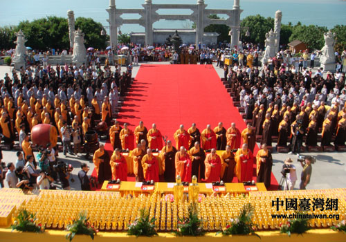 開光法會由普陀山佛教協會會長、普濟禪寺方丈道慈和尚與臺灣傳孝長老、圓塵法師共同主持,來自兩岸的佛教界人士和信眾共1000余人共同見證了這一具有歷史意義的時刻。