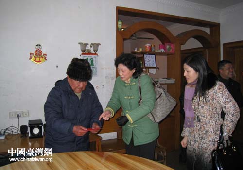 中國臺灣網1月20日撫州消息 日前,江西省撫州市臺辦副主任章一萍率領臺辦干部深入東鄉、宜黃、南豐走訪慰問困難定居臺胞臺屬,給他們送去市委、市政府的關心和問候,并祝他們在新的一年生活幸福。(中國臺灣網、撫州市臺辦聯合報道)