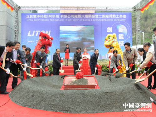 中國臺灣網(wǎng)4月15日阿壩消息 4月15日,臺灣立敦電子科技有限公司阿壩州廠辦大樓落成啟用開幕暨二期廠房動土典禮在阿壩州漩口新型工業(yè)園區(qū)舉行。四川省臺辦副主任鐘遠超,四川省商務(wù)廳副廳長劉欣,阿壩州委常委、州國資委黨委書記谷運龍,阿壩州委常委、汶川縣委書記青理東,成都市臺辦副主任唐明建,全國臺企聯(lián)副會長、成都市臺商協(xié)會會長高錦樂,立敦電子科技有限公司及其供貨商、客戶代表等共計100余人出席典禮。