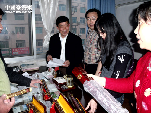 嚴守仁、嚴淑珍一行先到田坪鎮(zhèn)金竹村祭祖,之后在玉屏縣政協(xié)副主席、統(tǒng)戰(zhàn)部長羅友元、副部長臺辦主任楊芳等人的陪同下,參觀了玉屏縣簫笛廠。在玉屏簫笛廠,嚴守仁、嚴淑珍一行興致勃勃地參觀了簫笛陳列館,深入簫笛廠制作車間,觀看了簫笛的選料、鉆孔、雕刻等制作過程。嚴守仁、嚴淑珍對玉屏縣燦爛的簫笛文化、精美的簫笛產品贊不絕口,并當場購買了幾副簫笛帶回臺灣。