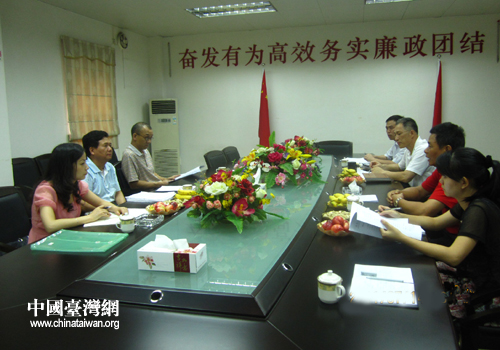 中國臺灣網7月19日廣州消息 7月14日至15日,廣東省臺辦副主任蔣長芳一行4人到江門市調研,并與江門市委臺辦有關人員進行了座談。