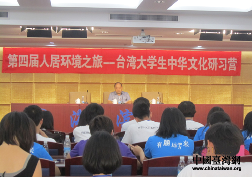 中國臺灣網8月9日威海消息 8月8日,“第四屆人居環境之旅——臺灣大學生中華文化研習營”走進山東大學威海分校,開始了研習營第三天的行程。
