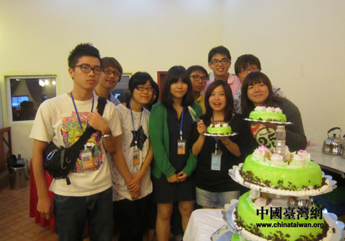 當天,還是一位臺灣女生的24歲生日,威海市臺辦的工作人員為她買了大蛋糕,大家一起慶祝,全體營員為她唱生日歌,她很激動地說:“這是我第一次在大陸過生日,很高興,也很感動,希望大家此次有一個愉快的旅程。”(中國臺灣網山東省臺辦通訊員孫培君)