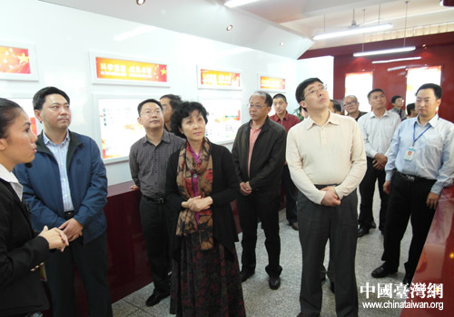 張錦明察看游仙區教育系統抗震救災及災后重建陳列館(圖片來源:綿陽市臺辦)