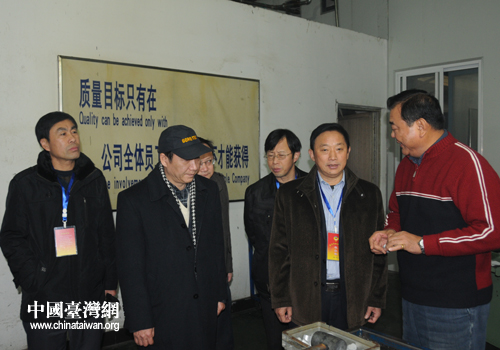中國臺灣網12月22日宿遷消息 12月21日下午,為廣泛聽取政協委員對宿遷市對臺工作的意見和建議,推進《臺灣同胞投資保護法》及其《實施細則》的有效落實,江蘇宿遷市政協副主席孫其松率部分政協委員在市臺辦領導的陪同下,實地考察了江蘇鼎峰重鋼工程有限公司、可成科技(宿遷)有限公司、江蘇鋁技精密機械有限公司等臺資企業,并與部分臺資企業代表進行了座談。
