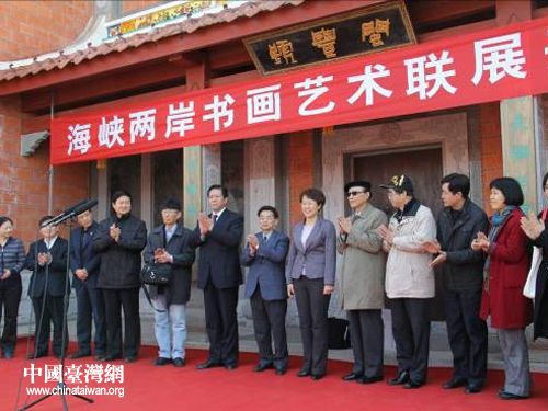 中國臺灣網3月26日棗莊消息 3月24日,由山東省棗莊學院和臺灣文藝協會聯合主辦的海峽兩岸書畫藝術聯展在臺兒莊古城舉行。棗莊市委副秘書長、市臺辦主任畢志偉,棗莊學院院長胡小林,臺灣文藝協會理事長王吉隆,臺灣著名畫家高好禮等出席開幕式并為活動剪彩。