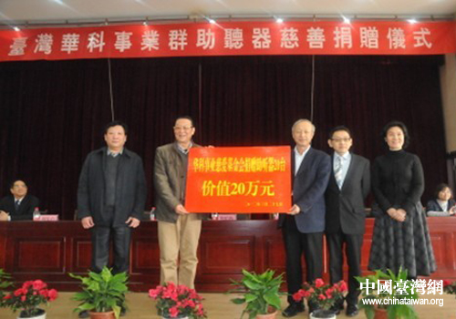 中國臺灣網3月28日徐州消息 3月27日,臺灣華科事業群董事長焦佑衡、江蘇省政協港澳臺僑委副主任陳堯以及華科事業慈愛基金會工作人員一行5人來到徐州市特殊教育中心,向這里的聽障兒童捐助了價值二十萬元的助聽器。