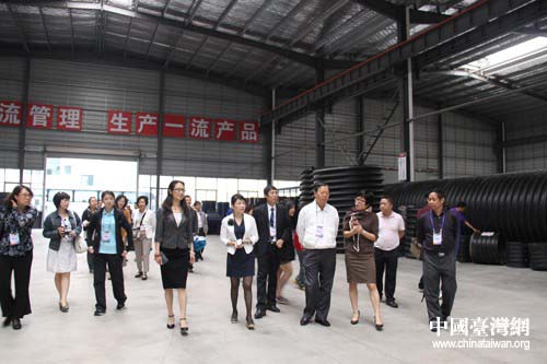 中國臺灣網5月24日貴陽消息 日前,臺灣青年菁英考察團來到楓葉控股集團貴州管業有限公司參觀考察,嘉賓們對該企業自行研制的高密度乙烯(HDPE)給水管材展開了討論。考察團成員、臺中市青工會總會長張伍毅瞅準商機,主動與企業負責人進行了交流,表達出加強合作,共享高科技成果的意愿。