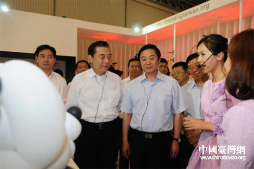 中共四川省委書記、省人大常委會(huì)主任劉奇葆一行參觀2012四川(成都)臺(tái)灣名品博覽會(huì)臺(tái)灣精品館。(圖片來源:四川省臺(tái)辦)