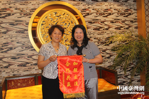棗莊市臺辦設宴款待兩岸記者,賓主交換禮物。(圖片來源:棗莊市臺辦)