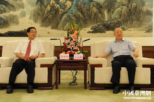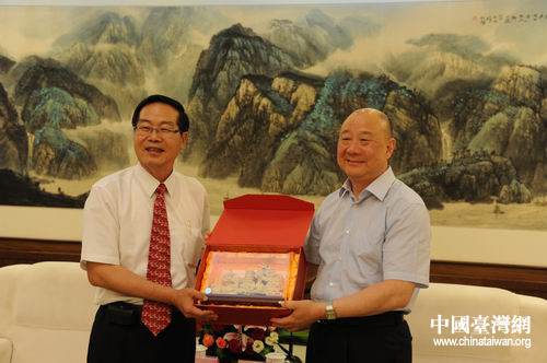湖北省副省長田承忠會見臺灣南投縣縣長李朝卿一行。(湖北省臺辦 陸勝 攝)