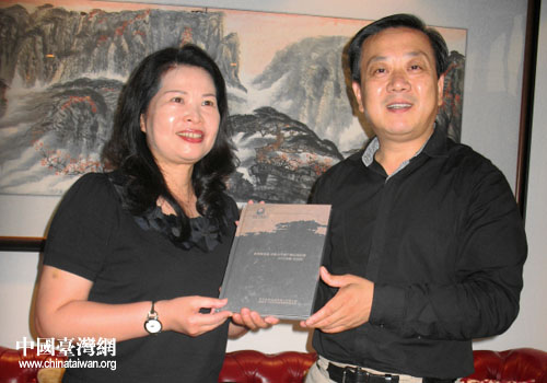 威海市臺辦主任于連波與兩岸記者互贈禮物。(圖片來源:威海市臺辦)