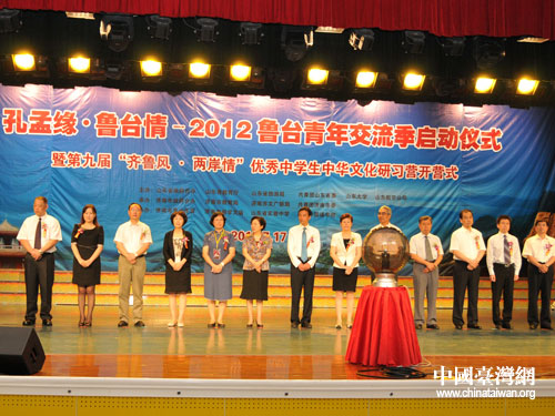 中國臺灣網(wǎng)7月17日濟南消息 7月17日上午,“孔孟緣·魯臺情—2012魯臺青年交流季啟動儀式暨第九屆“齊魯風(fēng)·兩岸情”優(yōu)秀中學(xué)生中華文化研習(xí)營開營式”在濟南市青少年宮舉行。國臺辦交流局副局長嚴(yán)中洲、山東省臺辦主任張雪燕、濟南市委副書記雷杰出席活動,省教育廳、省旅游局、團省委、山東航空公司、山東大學(xué)、山東中醫(yī)藥大學(xué)和濟南市臺辦等10家主辦單位負(fù)責(zé)人參加了啟動儀式和開營式。