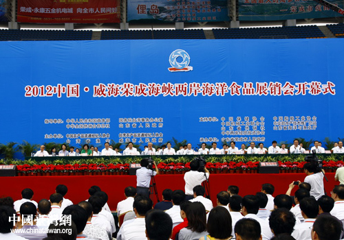 中國臺灣網7月23日榮成消息 7月21日上午,2012中國·威海榮成海峽兩岸海洋食品展銷會在榮成市體育場隆重開幕。展銷會由商務部、國務院臺辦、中華全國供銷合作總社、山東省政府指導,中國農產品流通經紀人協會、臺灣農產品流通經紀人協會、臺灣省漁會和威海市人民政府共同舉辦,榮成市人民政府承辦。