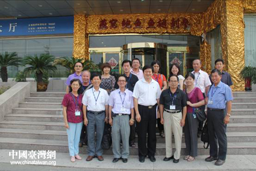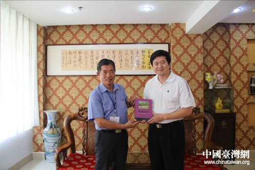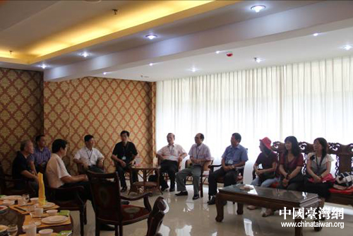中國臺灣網7月27日棗莊消息 7月26日,臺灣南投縣書畫藝術學會理事長林木村博士一行12人來山東棗莊交流參訪。棗莊市臺辦副主任、棗莊海峽兩岸交流基地辦公室主任王國華會見交流團一行。