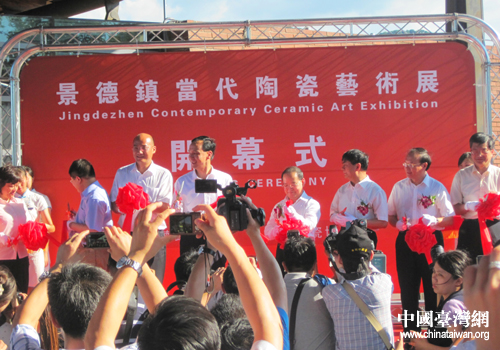 中國臺灣網8月22日新北消息 8月20日下午,景德鎮當代陶瓷藝術展在臺灣新北市鶯歌鎮舉行,江西省省長鹿心社、臺灣新北市市長朱立倫等人為藝術展剪彩,并參觀了鶯歌陶瓷博物館。(中國臺灣網、江西臺辦聯合報道)