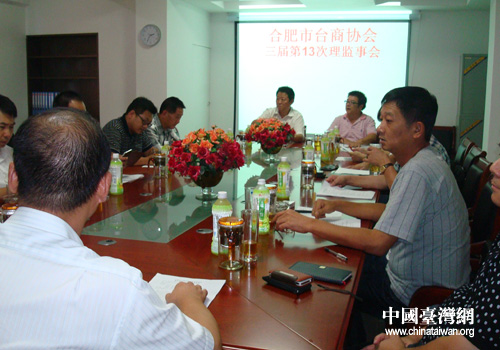 中國(guó)臺(tái)灣網(wǎng)8月24日合肥消息 日前,合肥市臺(tái)灣同胞投資企業(yè)協(xié)會(huì)三屆第13次理監(jiān)事會(huì)在協(xié)會(huì)會(huì)議室舉行。市臺(tái)辦主任徐延安、副主任丁素光應(yīng)邀出席。合肥市臺(tái)協(xié)會(huì)長(zhǎng)吳安國(guó)報(bào)告了3月份以來(lái)協(xié)會(huì)各項(xiàng)活動(dòng),趙頌杰監(jiān)事通報(bào)協(xié)會(huì)財(cái)務(wù)收支報(bào)告。與會(huì)理監(jiān)事分別予以審議,并討論臨時(shí)動(dòng)議等。