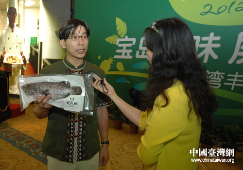 臺灣屏東縣副縣長林佳濱推介屏東魚產。(北京通訊員 王福增 攝)