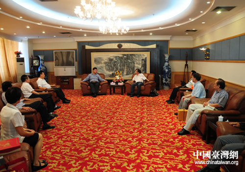 中國臺灣網9月17日漢中消息 日前,臺灣京都同仁堂生物科技股份有限公司總經理楊瞻一行來漢考察中藥材與藥廠深加工項目。市委常委、常務副市長魏建鋒會見了楊瞻一行,副市長曹宏,市政府副秘書長、市法制辦主任樊強參加會見。
