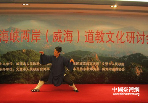 中國臺灣網(wǎng)9月20日威海消息 9月18日,第三屆海峽兩岸(威海)道教文化研討會在文登市舉行。臺灣正宗全真道教會理事長、全真正宗龍門派第二十六代傳人巫平仁觀主率團(tuán)來威海參會,并在研討會上表演了一套弘道養(yǎng)生太極拳,弘揚(yáng)傳統(tǒng)道教文化。(中國臺灣網(wǎng)、威海市臺辦聯(lián)合報道)