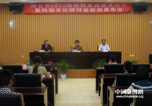 中國臺灣網9月21日煙臺消息 9月20日上午,煙臺市2012海峽兩岸媽祖文化節暨媽祖文化研討會新聞發布會在煙臺市博物館學術報告廳舉行。據介紹,本屆媽祖文化節暨媽祖文化研討會由煙臺市人民政府主辦,煙臺市臺辦、煙臺市文廣新局承辦,煙臺市博物館協辦,于9月22日-25日在煙臺市召開。屆時,臺灣北港朝天宮、臺中沙鹿紫云宮等媽祖宮廟代表及專家學者、新聞媒體共計120余人參加。