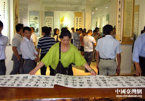 中國(guó)臺(tái)灣網(wǎng)9月28日江蘇海安消息 9月27日至30日,曾在兩岸引起強(qiáng)烈反響的首屆“中華情·兩岸緣”臺(tái)商臺(tái)胞書畫展在江蘇省海安縣國(guó)家級(jí)“5-23”文化產(chǎn)業(yè)主題公園舉行巡展。這次書畫展由中國(guó)華藝廣播公司華廣網(wǎng)、上海市臺(tái)灣同胞投資企業(yè)協(xié)會(huì)和臺(tái)灣中華新世代藝術(shù)文化交流協(xié)會(huì)共同主辦,今年6月底在上海進(jìn)行了首次展出。