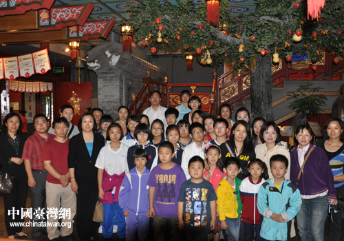 慰問活動在老舍茶館舉行,參加活動的臺籍學生在老師和家長的陪同下,興高采烈的來到老舍茶館,在茶館辦公室主任安澤京的陪同下,進行了參觀,了解了茶館從無到有,從小到大,從簡單的茶館到以茶會友,成為當前聯系世界各地文化,特別是兩岸傳統文化重要紐帶的發展歷程。