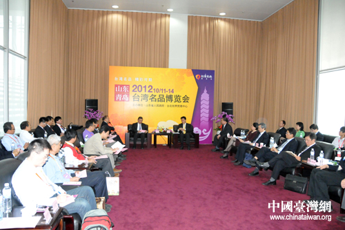 中國臺灣網10月15日青島消息 10月12日上午,山東省副省長夏耕視察了在青島舉行的2012山東(青島)臺灣名品博覽會,并就深化魯臺經貿合作與展會組織方、參展臺商代表進行了會談。