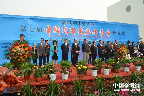 中國臺灣網(wǎng)10月16日聊城消息 日前,海峽兩岸書畫情——第七屆中國(高唐)書畫博覽會暨李奇茂美術(shù)館開館儀式在聊城高唐舉行。山東省委常委、統(tǒng)戰(zhàn)部長顏世元,中國國民黨副主席蔣孝嚴(yán),國民黨中央評議委員、兩岸文化藝術(shù)交流小組主任、中華兩岸文化藝術(shù)基金會會長莊漢生,臺灣著名畫家、中華文化海峽兩岸交流協(xié)會榮譽(yù)會長李奇茂,國臺辦交流局副局長曲萌,山東省臺辦主任張雪燕,聊城市委書記宋遠(yuǎn)方,市委常委、高唐縣委書記劉春華等參加了開幕式。