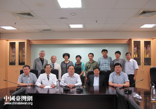威海市醫療衛生交流團成員在臺北醫學院考察時合影留念。(圖片來源:威海市臺辦)