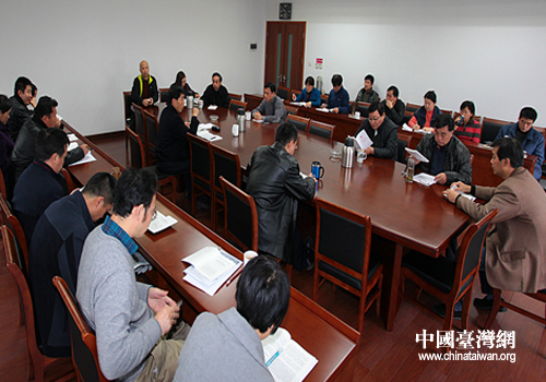 中國臺灣網11月30日南京消息 11月30日,南京市臺辦黨支部組織黨員、干部學習中國共產黨第十八次全國代表大會文件匯編,認真貫徹、落實十八大會議精神。(中國臺灣網、南京市臺辦聯合報道)