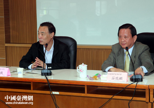 山東省農業教育培訓交流團赴臺交流考察,戰樹毅和南投縣農會總干事莊瑞麟參加座談會。(圖片來源:山東省臺辦)