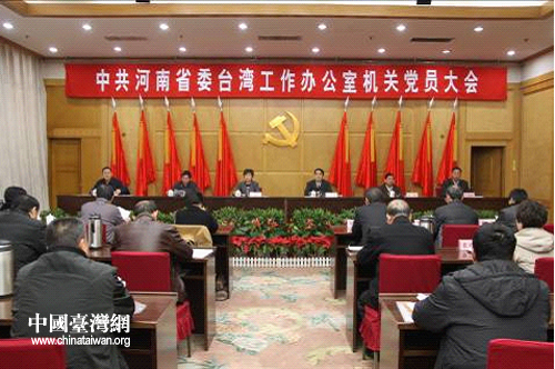 中國臺灣網12月14日鄭州消息 12月12日上午,中共河南省委臺灣工作辦公室機關黨員大會在河南省人民會堂召開,成立中共河南省委臺辦機關委員會,選舉產生第一屆黨委委員。河南省臺辦主任宋麗萍,省委統戰部副部長趙太安,省委省直工委專職委員王綱要出席大會并講話,省工商聯副主席李振到會祝賀。