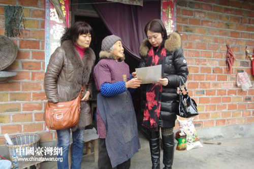 中國(guó)臺(tái)灣1月24日眉山消息 2013年春節(jié)將至,日前,四川眉山市臺(tái)辦會(huì)同各區(qū)縣臺(tái)辦對(duì)眉山市部分臺(tái)胞臺(tái)屬進(jìn)行了看望和慰問(wèn)。