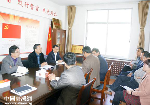 威海市臺辦黨支部在臺辦會議室召開全體黨員大會。(圖片來源:煙臺市臺辦)