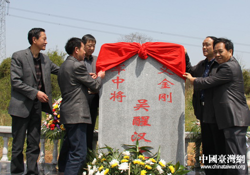 黃陂區領導與吳醒漢嫡孫為吳醒漢墓揭幕。(圖片來源:武漢市臺辦)
