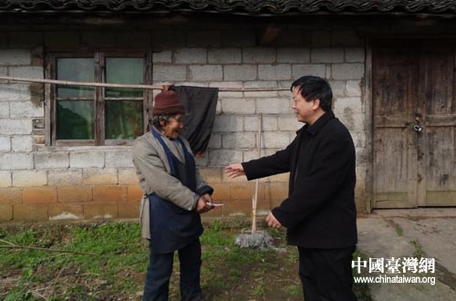 銅仁市臺辦副主任黎明看望貧困臺屬楊臘香老人。(銅仁市臺辦 徐杰 攝)