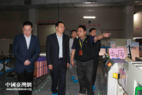 張軍一行先后考察了志超科技(遂寧)有限公司、立華彩印(遂寧)有限公司等臺資企業(yè),對近年遂寧臺資企業(yè)的發(fā)展壯大給予了充分肯定。他說,四川省搶抓兩岸關(guān)系持續(xù)發(fā)展和臺資內(nèi)移的重要機(jī)遇,主動作為,務(wù)實(shí)推進(jìn),川臺經(jīng)貿(mào)交流合作取得快速發(fā)展。遂寧正是抓住這輪臺商投資的機(jī)遇,積極主動承接為成都、重慶等地大企業(yè)服務(wù)的配套企業(yè),實(shí)現(xiàn)了與臺灣經(jīng)貿(mào)合作大的飛躍。