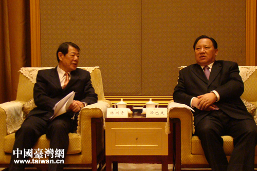 澤巴足會見臺灣公務人員協會理事長陳川青一行。(圖片來源:甘肅省臺辦)