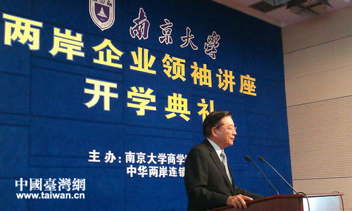 中國臺灣網4月27日南京消息 4月27日,由南京大學和臺灣中華兩岸連鎖經營協會共同舉辦的“兩岸企業領袖講座”在南京大學舉行開學典禮。