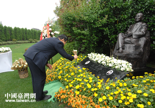 敬獻(xiàn)鮮花。(上海臺(tái)辦 葛鳳章 攝)