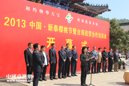 中國臺灣網(wǎng)5月13日新泰消息 由山東省新泰市人民政府和泰安市臺灣事務辦公室共同舉辦的“2013中國·新泰櫻桃節(jié)暨臺商經貿合作洽談會”日前在山東省新泰市開幕。山東省臺辦主任張雪燕,泰安市委常委、副市長劉衛(wèi)東,泰安市人大常委會副主任尹衍祥,泰安市政協(xié)副主席宋魯,泰安市臺辦主任劉衛(wèi)東等出席,臺商及各地客商共80余人參加。