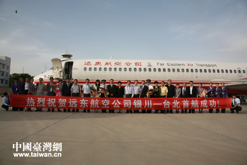 中國臺灣網5月14日銀川消息 5月12日下午18時20分,一架滿載165位乘客的麥道82客機,自寧夏銀川河東機場騰空而起,拉開了臺灣遠東航空公司寧夏銀川-臺灣桃園的定期直航序幕。自此,臺灣遠東航空公司正式進駐寧夏市場。